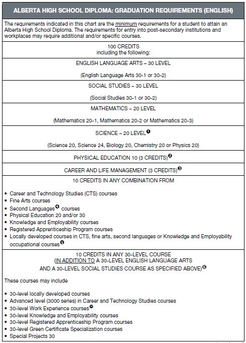 - an Alberta Education Diploma—100 credits in compulsory and optional courses;