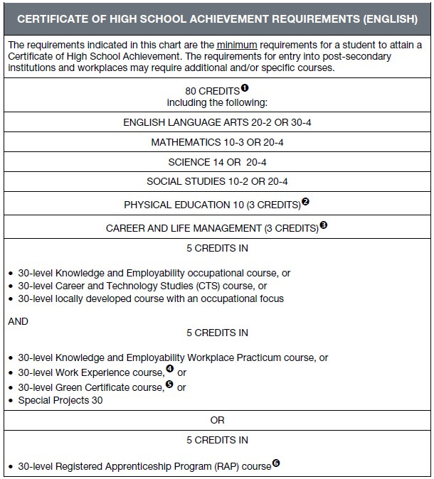 - an Alberta Certificate of Achievement—80 credits in Knowledge and Employability (K&E) and option courses; or