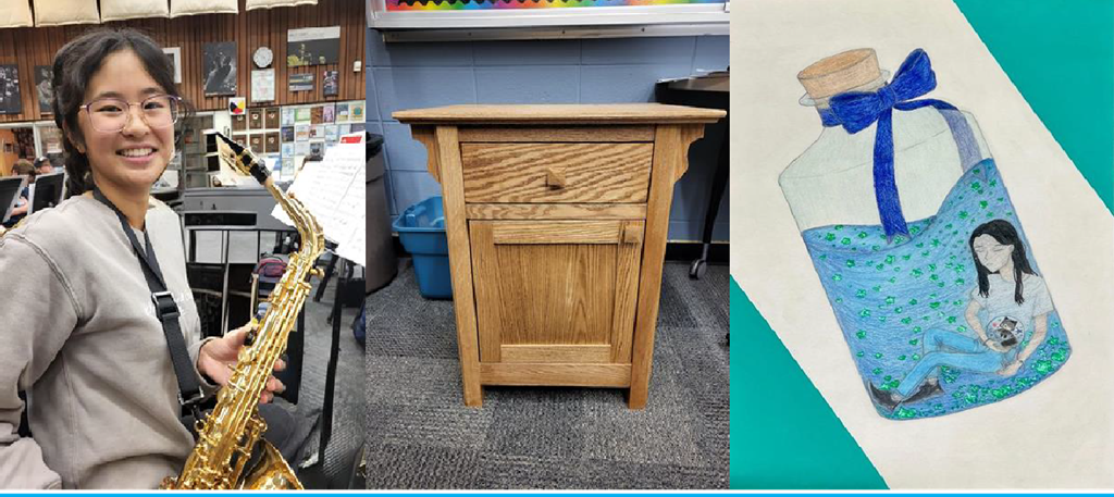 Lauren T is a Grade 12 student who is fully immersed in Fine Arts. She is a talented musician, and construction student here at John G Diefenbaker High School. Lauren has spent years enhancing her skills on a variety of woodworking tools, while simultaneously picking up other musical fine art techniques.