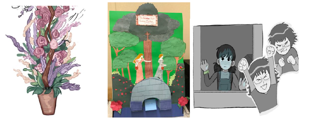 Aysha Z is a student in Grade 12 who has demonstrated vast commitment to various art programs. She is an artist, musician, and part of the tech crew for the school play. Aysha began drawing at the young age of 5. Since then, she has experimented with various mediums. Her recent media consists of both traditional and digital art. However, she has recently dedicated her time and talent to honing her digital media skills. Aysha is trying the new art forms of digital 2D and 3D animation. She utilizes her animation and art skills to create backdrops and animations for Dief theatre productions. Her commitment to the arts also shows through her great passion for music. Aysha has been playing the flute since she was 10, having experience in various genres of music. She is currently an active member of the Diefenbaker Symphonic Band. Aysha combines her passions for art and music by using songs as her artistic muse. The feelings conveyed through music inspire her creations.